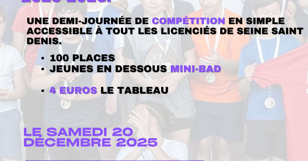 Le Comité Départemental de Badminton de Seine-Saint-Denis a le plaisir d’inviter tous les jeunes talents du 93 au Plateau Avenir Départemental, une journée sportive dédiée à la découverte, à la progression et au plaisir du jeu !